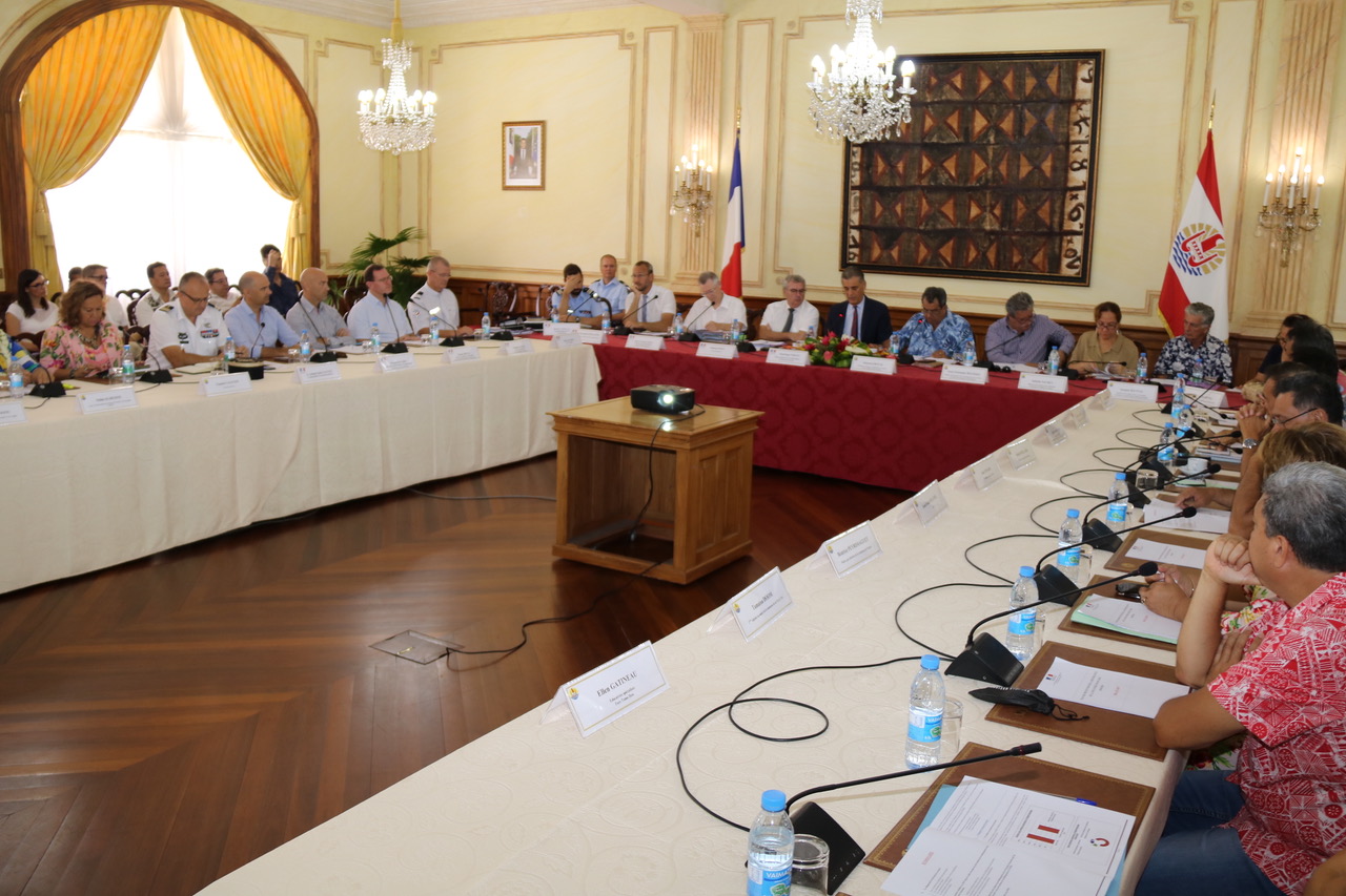 Le Conseil territorial de la prévention de la délinquance en Polynésie française s’est réuni, ce matin, à la Présidence, co-présidé par le Haut-commissaire de la République , Dominique Sorain, le Président de la Polynésie française, Edouard Fritch et le Procureur Général, Thomas Pinson. (Crédit photo : Haut-commissariat de la République en Polynésie française)