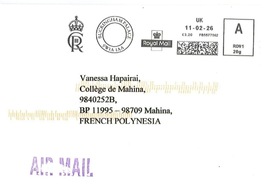 L’initiative remonte au mois de décembre : les élèves des classes de 6e Tuora et de 6e Faatura du collège de Mahina s’étaient lancés dans un projet original : écrire au roi Charles III, souverain du Royaume-Uni, pour lui souhaiter un joyeux Noël.