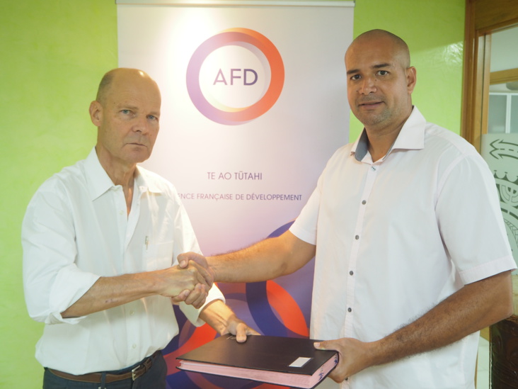 Ce jeudi, Vairupe Perez et Thierry Paulais, directeur de l’agence Agence française de développement de Papeete, ont signé une convention de financement de 25 millions de Fcfp.