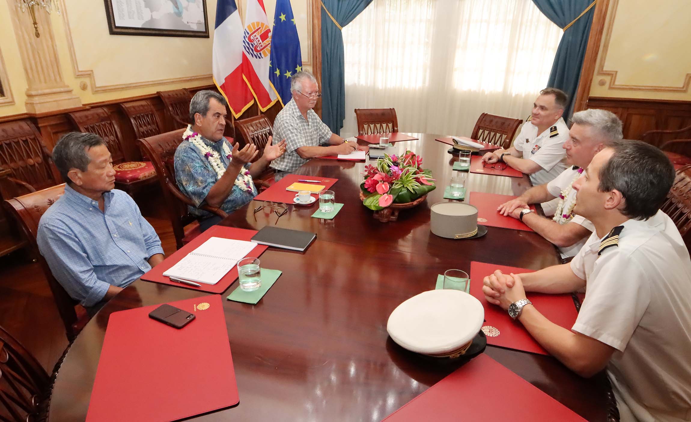 Il est en Polynésie pour entendre les trois armées, terre, mer et air, les réservistes, le Rimapp et le SMA. Le général François De Lapresle a longuement remercié le président de la Polynésie française pour l’atmosphère de fraternité qui existe en Polynésie. Notre mission, explique le général, « c’est aussi de protéger la paix« .