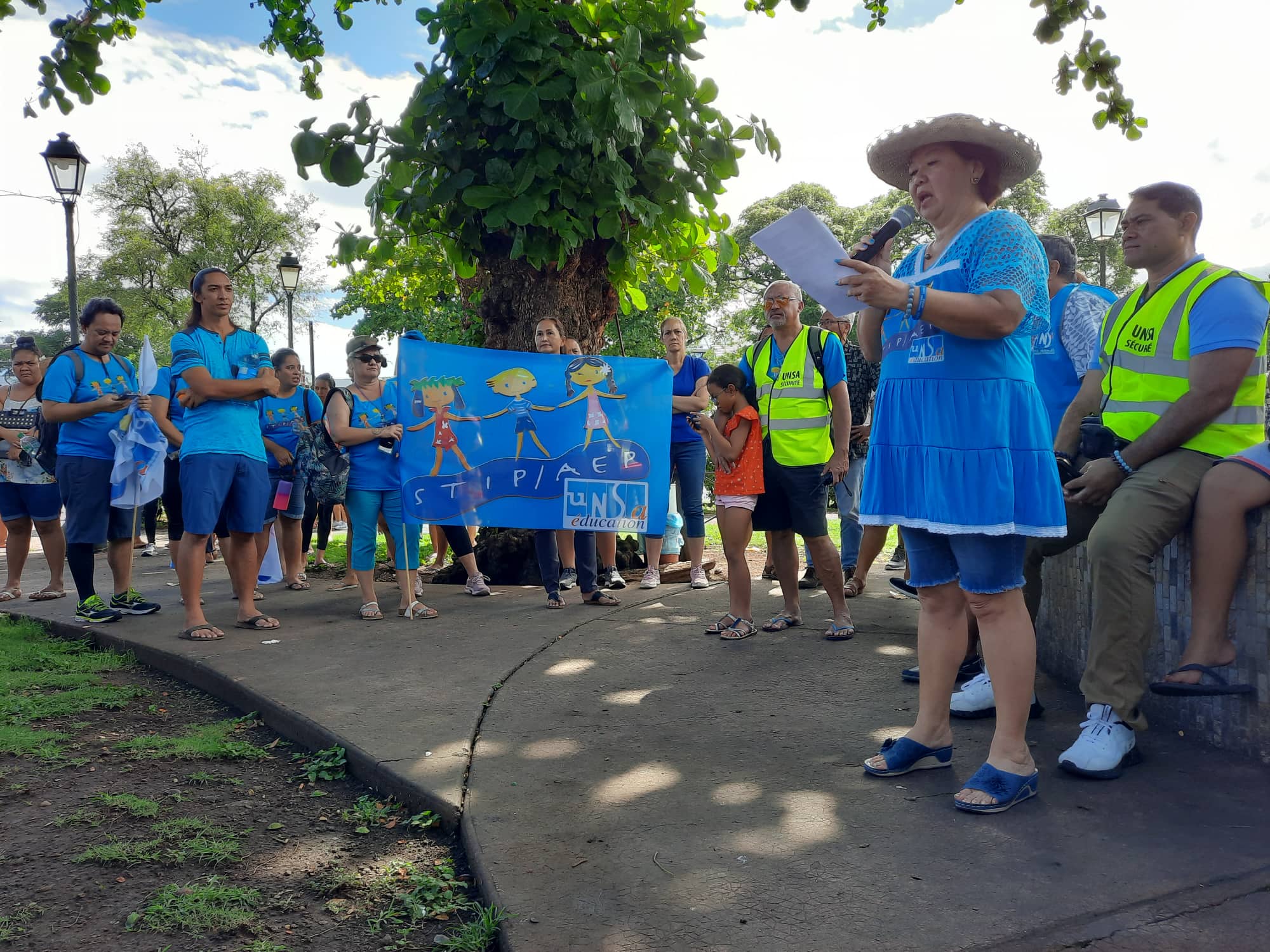 Une grève suivie par près de 400 enseignants. La majorité des grévistes a marché sur Tarahoi pour montrer leur mécontentement face à la réforme de leurs heures de travail hors présentiel.