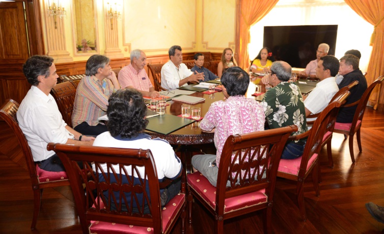 La chambre syndicale a également souhaité un point d’information sur les grands chantiers actuellement évoqués, tels que le projet aquacole de Hao, le Tahiti Mahana Beach, et la place des entreprises locales dans ces grands chantiers. A cet égard, le président et le ministre de l’Equipement Albert Solia ont apporté, en toute transparence, un point d’information sur les quelques grands chantiers souhaités par le Pays. Enfin, pour répondre à ce souci d’information, le président a proposé qu’un représentant de la chambre syndicale soit membre du Comité de suivi du chantier du Tahiti Mahana Beach.