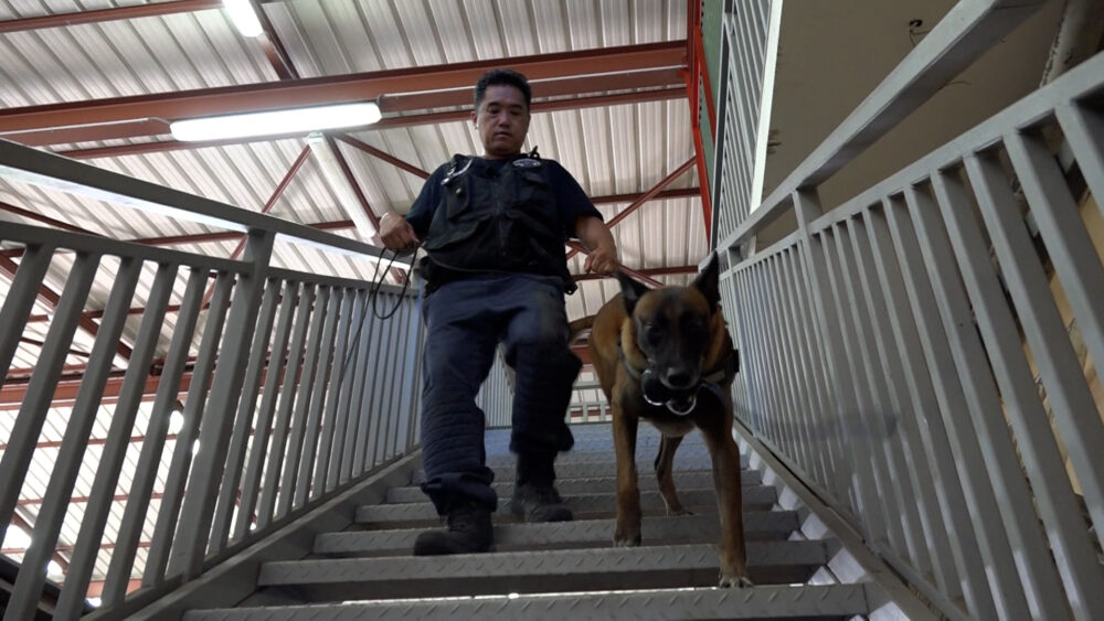 Sur le terrain, cette mobilisation est déjà une réalité. À Papeete, la brigade cynophile de la police municipale est devenue un outil central des opérations. Dans la salle d’entraînement, Pocket, chien vedette, affine chaque jour ses capacités. « La plus grosse prise de Pocket, c’était en 2021. C’était 18 millions de Fcfp dans une sacoche, enveloppée dans du papier film et cachée derrière un lavabo. (…) Aujourd’hui, Pocket a toutes les drogues dans le nez, y compris l’ice. On l’a formé localement », raconte Marcel Kwang, responsable de la brigade cynophile de Papeete, soulignant l’adaptation nécessaire des moyens face aux réalités locales. « Sans argent, le business ne peut pas fonctionner. C’est pour ça qu’on forme aussi les chiens à la recherche de grosses sommes d’argent dissimulées », ajoute-t-il.