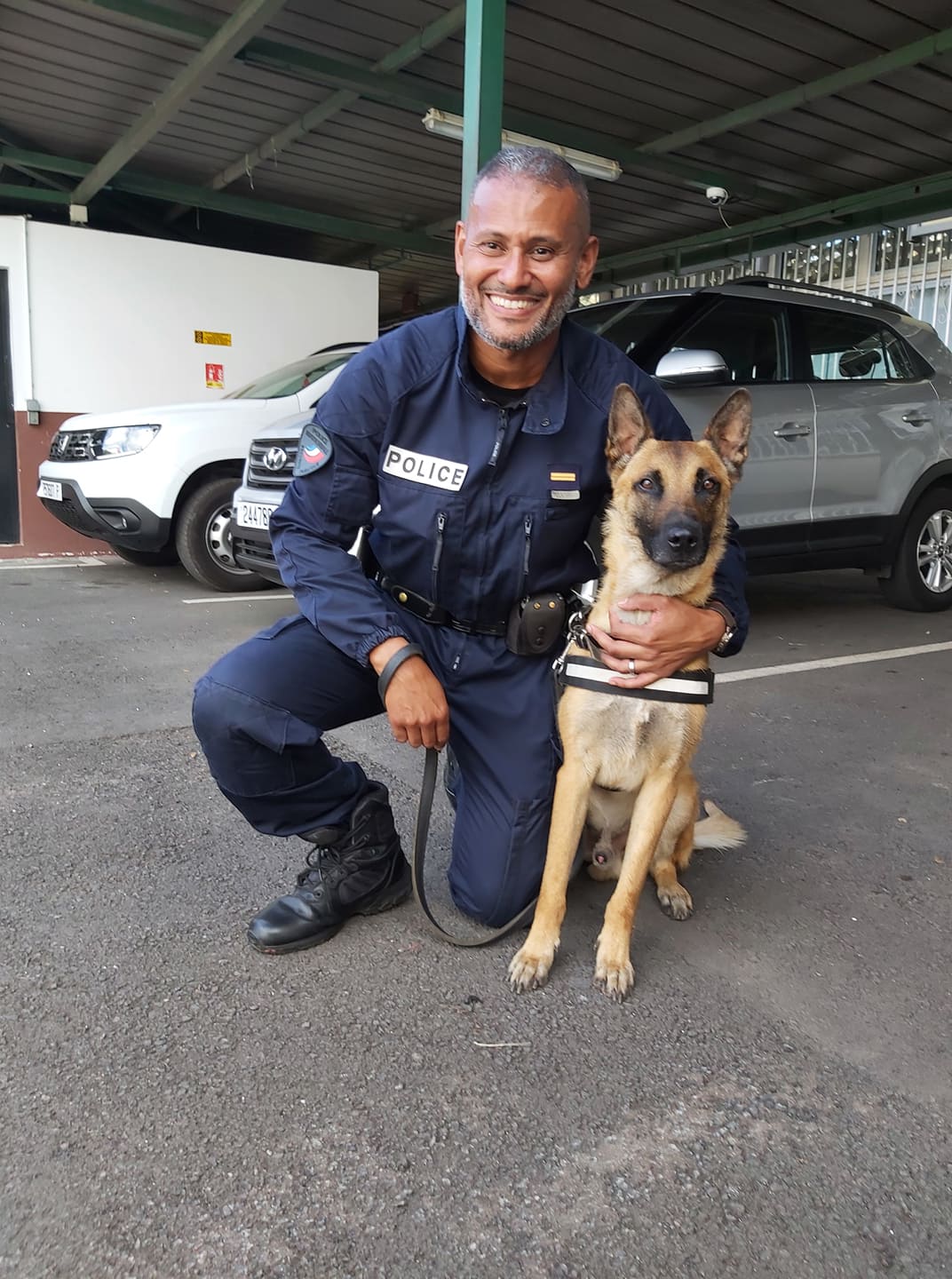 Le nouveau maitre-chien, le brigadier Kimbembe a suivi 3 mois de formation à Cannes Ecluses, en métropole, où il a fait la rencontre de Power: » C’est rapide, on lui fait sentir certaines choses et il mémorise en moins d’une minute. Il faut savoir qu’il a une capacité de mémorisation de 45 produits. Dans l’état actuel des choses, il est déjà à 25 produits. Mais ça peut continuer, il a encore de la marge. »