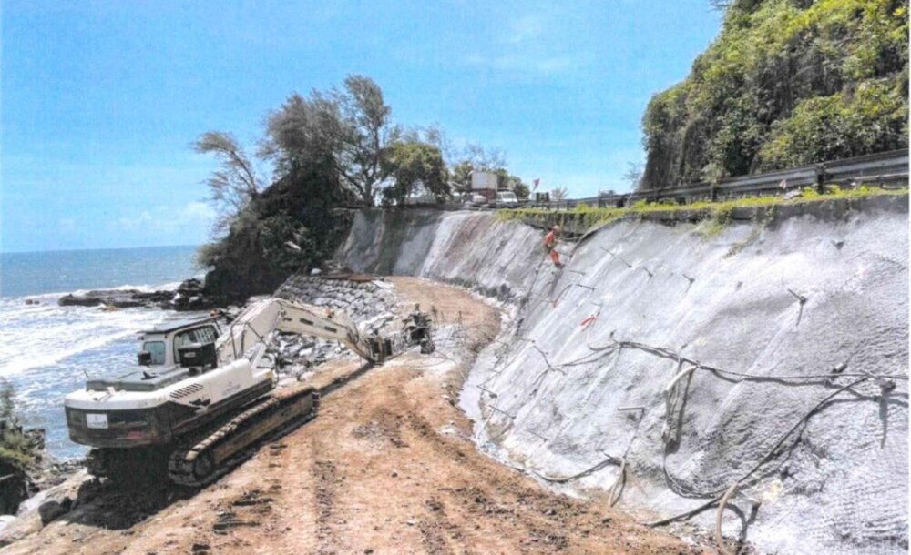 « En mai 2024, à la suite de l’éboulement du talus en contrebas de la RT2 dans le virage de la pointe Tapahi, les voies de circulation ont été décalées vers le talus côté montagne afin de sécuriser le trafic routier », rappelle la Présidence dans un communiqué.