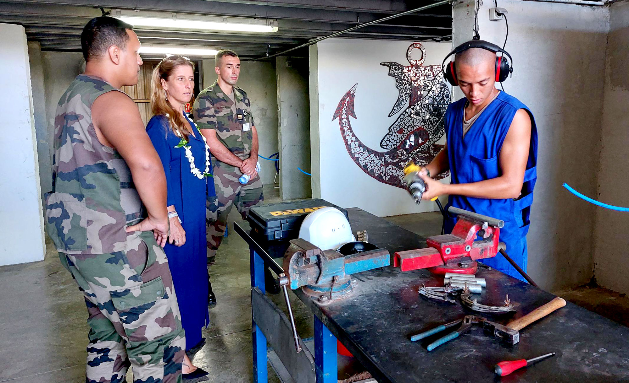 Accueillie par le Lieutenant-colonel Fabrice Avenel Chef de corps du Régiment du service militaire adapté de Polynésie française, Virginie Bruant a été conviée à une présentation des missions, de l’organisation et des filières de formation du régiment.