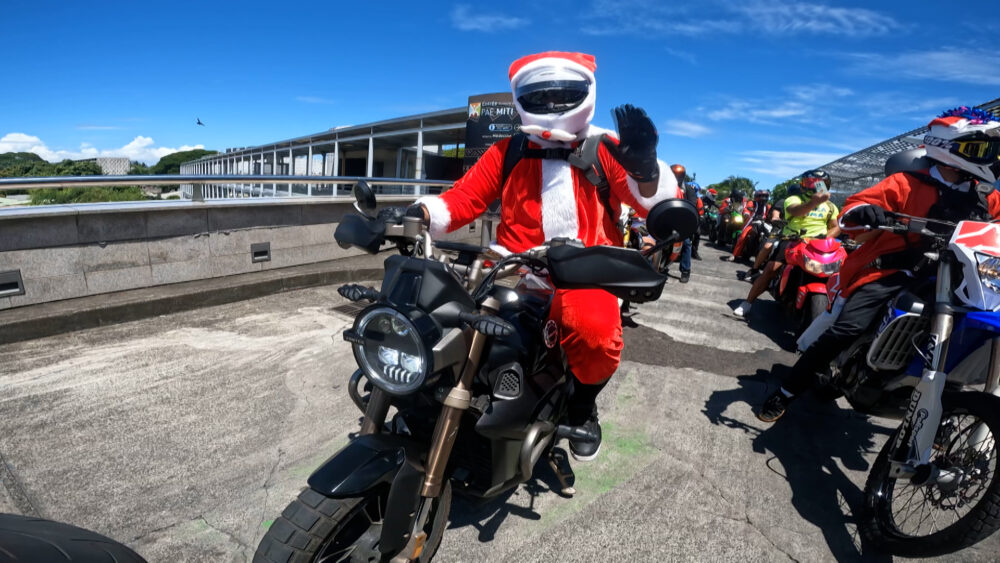 Costumés aux couleurs de Noël, pour certains tatoués version biker US, les 75 motards de la 5ème ride des Pères Noël avaient une mission commune : récolter et acheminer, de Punaauia au Centre Hospitalier de la Polynésie Française (CHPF), des dons au bénéfice des enfants hospitalisés. L’opération, devenue un rendez-vous incontournable depuis 2020, est née de la volonté de Landry Denis, organisateur de l’événement pour Tahiti Biker.