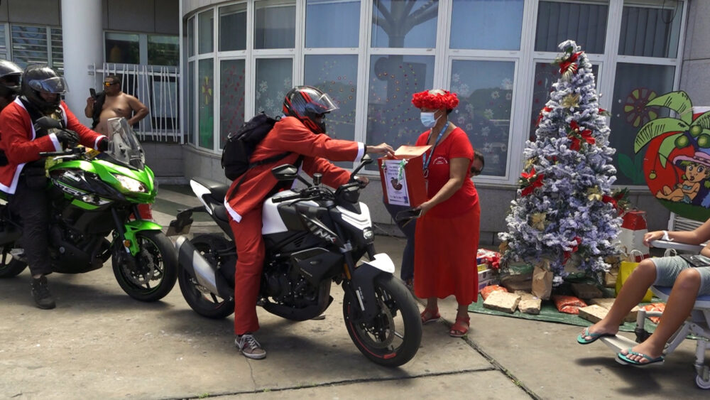 Ce dimanche, des dizaines de "Santa" motards ont défilé sur la côte Ouest de Tahiti, au profit de l'association Pererau Here O Te Tama, apportant cadeaux et réconfort aux jeunes patients du CHPF.