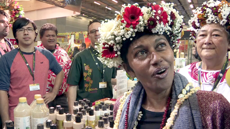 « J’ai l’impression d’avoir fait 20 heures d’avion et me retrouver de nouveau en Polynésie » dit-elle devant le stand consacré à nos îles. « Je suis de nouveau devant des produits spécifiques à la Polynésie, et qu’il faut protéger. »