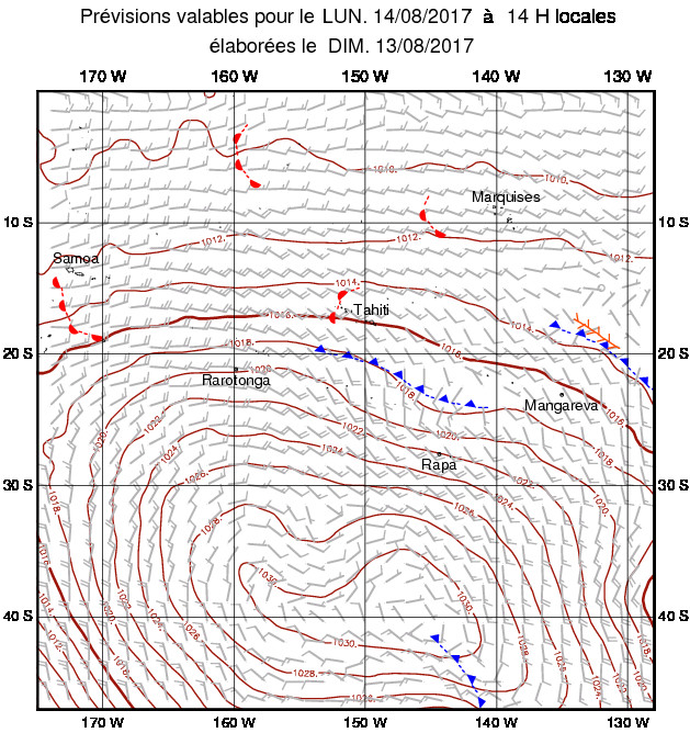Le maraamu souffle depuis les Australes, de Rapa précisément où l’on enregistre des températures de 11°, pour monter jusque sur les îles de la Société puis atteindre les Tuamotu et la région de Rikitea. « Ce qui a pu être surprenant, c’est que les températures étaient relativement douces la nuit et que d’un seul coup l’on se retrouve avec de températures de 18° sur Faa’a, 17° sur la presqu’île ainsi qu’à Mahina. Onze degrés à Rapa et de 16 à 18 sur la moitié sud des Tuamotu. » explique Nicolas Agius, prévisionniste à Météo-France.