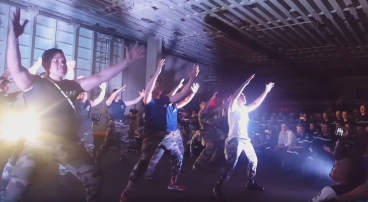 Avant de quitter le porte-avion, les engagés du Pacifique ont exécuté un haka et une série de danses sur le pont.