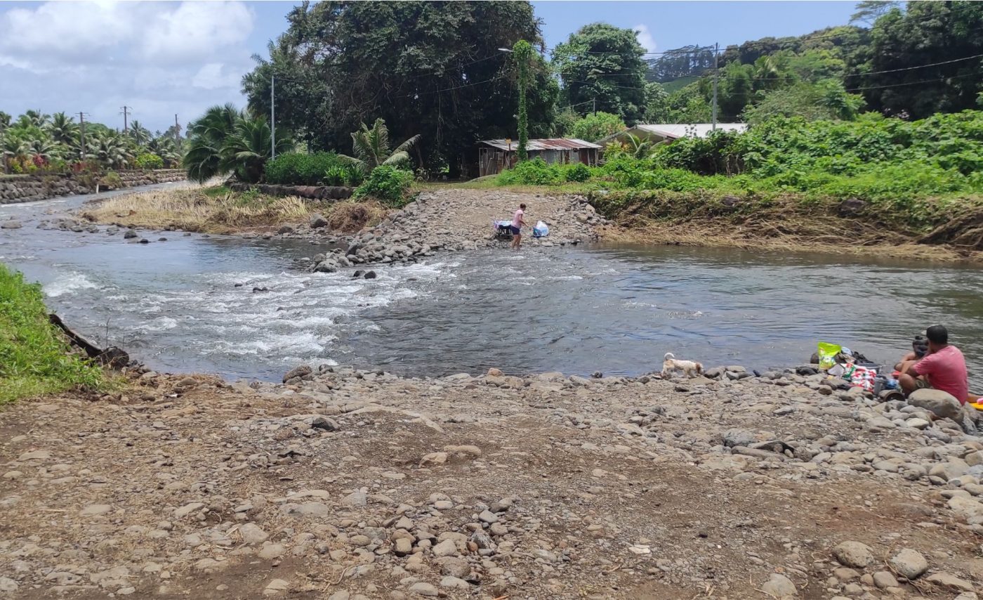 Un passage à gué provisoire permettant d’acheminer de l’eau et des vivres aux familles résidant sur le motu a été achevé le week-end dernier. Ce passage dans le lit de la rivière est uniquement accessible aux camions de la sécurité civile, adaptés pour le traverser et assurer l’approvisionnement des familles. « En aucune manière, il ne peut être utilisé par des véhicules privés », souligne la présidence dans un communiqué. Le courant de la rivière reste fort.