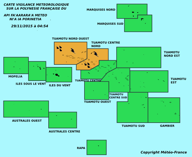 Par ailleurs, « un temps très perturbé dans lequel circuleront des centres dépressionnaires intéressera ce début de semaine le large Nord de la Société et des Tuamotu. Un développement d’une Dépression Tropicale ne peut être exclu dans cette zone perturbée », annonce Météo France.