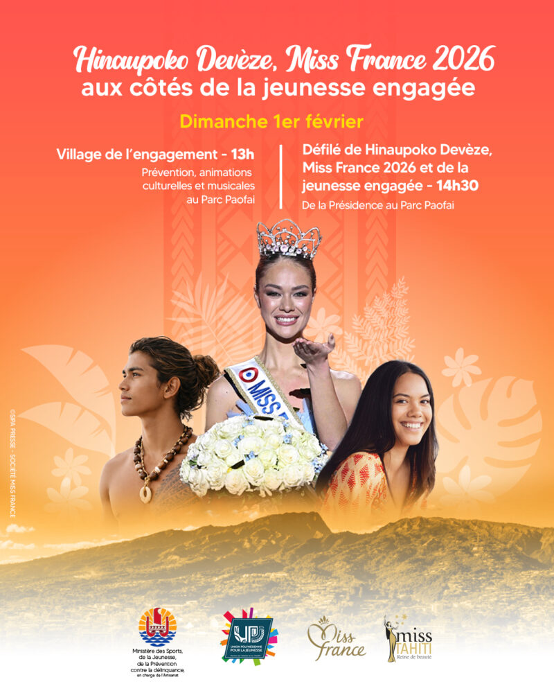 Une journée dédiée à la “Jeunesse engagée”, sera organisée ce dimanche 1er février au Parc Paofai. Un événement dont Miss France Hinaupoko Devèze sera l’ambassadrice. Elle participera à un défilé populaire entourée de la jeunesse polynésienne.