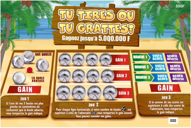 Attiré par le thème de la pétanque du nouveau jeu à gratter « Tu tires ou tu grattes ? » de la Pacifique des Jeux, un retraité de Papetoai avait acheté dans un tabac presse de Haapiti 4 tickets : 2 pour sa femme et 2 pour lui, qu’ils ont gratté ensemble.