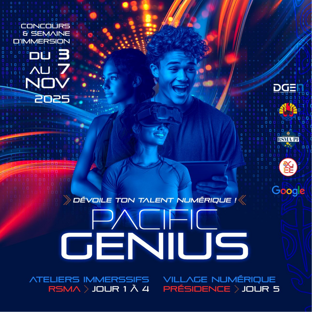 Les sélections ont été lancées par la DGEN le 26 septembre. Le concours est ouvert exclusivement aux lycéens du fenua, de la Seconde à la Terminale. Ils sont déjà nombreux à s’être manifestés, mais seulement 100 seront retenus pour une semaine d’immersion qui se déroulera au RSMA. Objectifs : révéler les talents, éveiller l’intérêt pour les métiers du numérique et offrir une expérience unique.