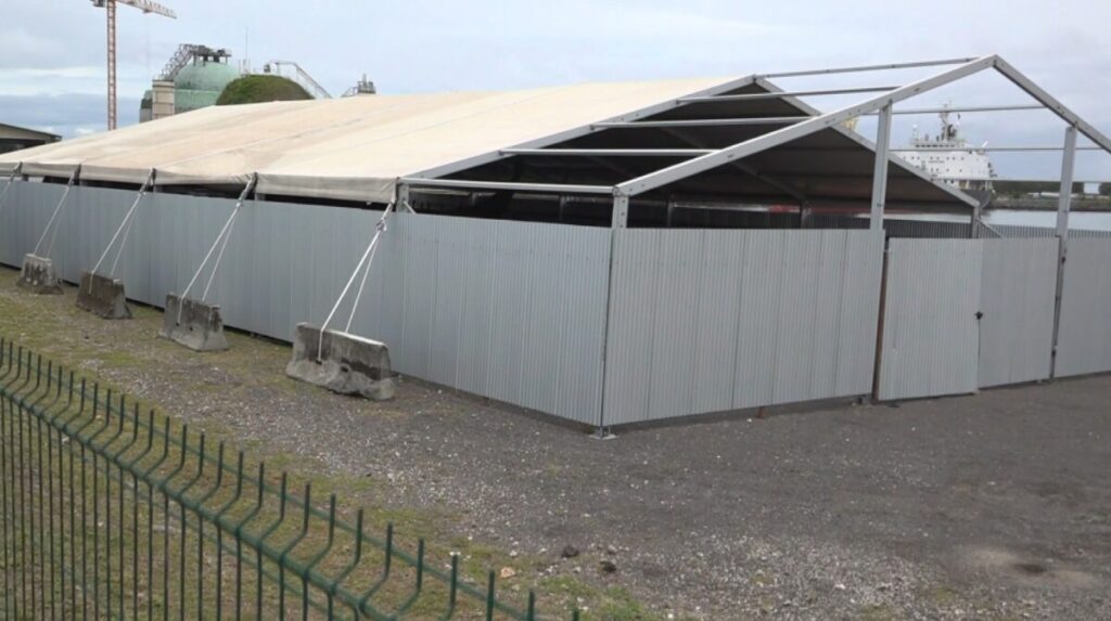 La pirogue est aujourd’hui stockée sous ce chapiteau à Motu Uta. (Crédit: TNTV)