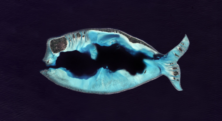 C’est avec sérieux et espièglerie que les organisateurs de la convention des » Pléiades Days » ont présenté une nouvelle île de l’océan Pacifique : Bora-Bora, remodelée avec une forme de poisson. Les 400 participants, surpris,