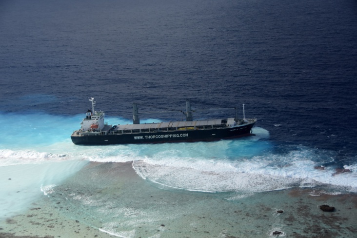 Le 23 juin dernier, un vraquier philippin de 132 mètres de long, le Thorco Lineage, s’échouait sur le récif de Raroia. Son capitaine et la compagnie étaient poursuivis au pénal pour « défaut de transmission d’un rapport lors d’un événement de mer et défaut de signalement lors d’un accident de mer », comme le veut la loi à travers la convention Marpol applicable dans la plupart des mers du monde.