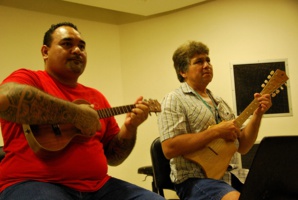 Ce mardi matin, Moana Urima et Tetia Fiedler Valenta, professeurs au Conservatoire artistique (CAPF), ont dirigé un cours de ukulele. Une centaine de joueurs, confirmés ou complètement débutants étaient présents. « L’important est de conserver le rythme », a averti Tetia tandis que Moana rappelait, de son côté, que « Bora Bora » se jouera uniquement en quatre temps.