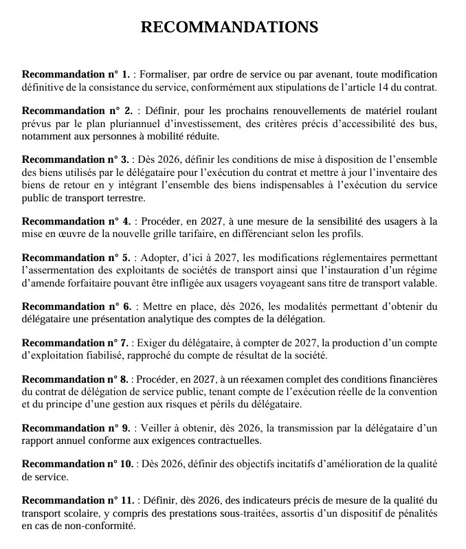 La CTC estime que le contrôle par la Polynésie française doit être renforcé s’agissant du suivi du transport scolaire, de la performance du réseau mais aussi de l’application financière du contrat ».