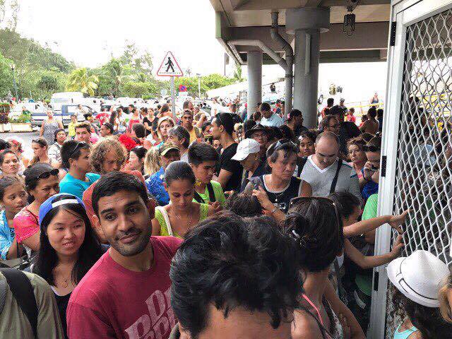 En attendant des dizaines de passagers se retrouvent dans une situation périlleuse. Les navires de Aremiti sont pris d’assaut mais les places ne sont pas illimitées. Une foule se presse devant les barrières de sécurité du quai Vaiare de Moorea mais la rotation affiche complet. Priorité a ceux qui sont réservés sur le bateau de 18h45 !