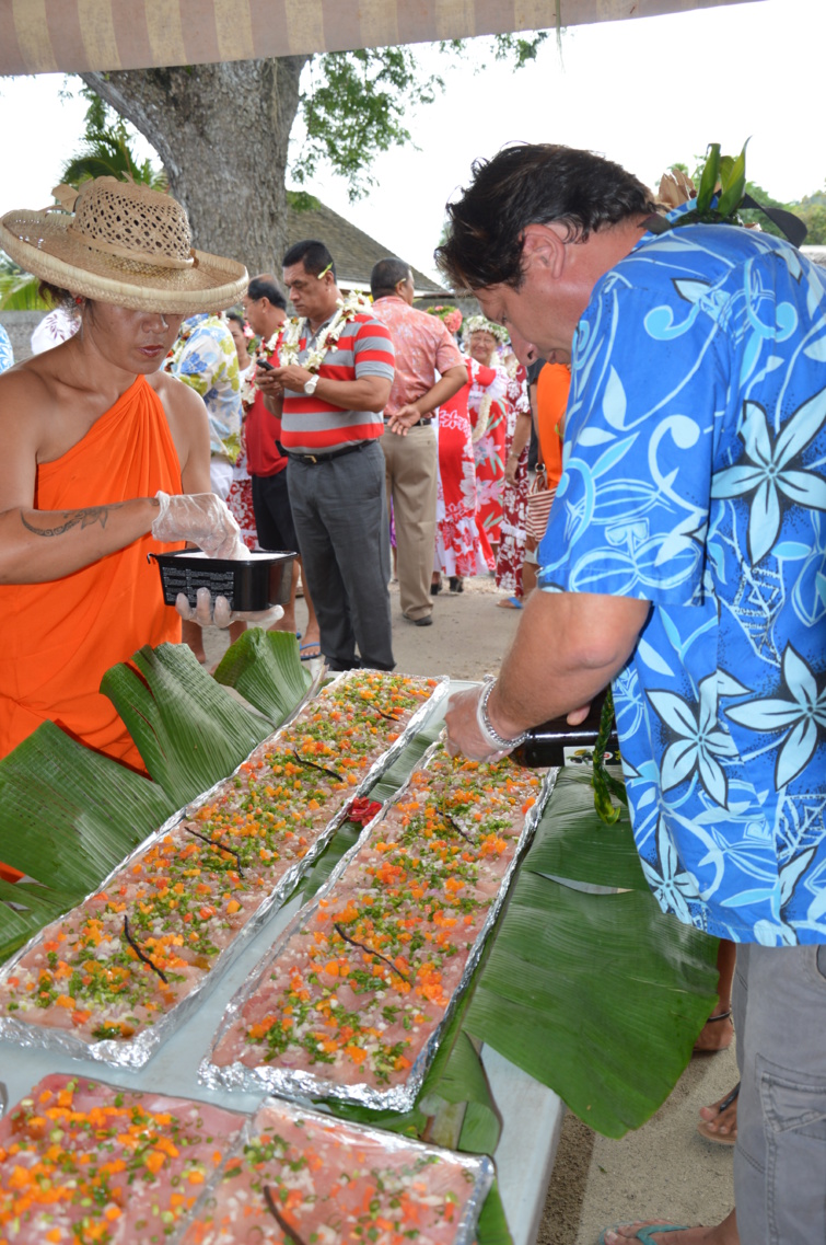 A l’occasion de la semaine de la vanille, le comité du tourisme de Huahine a organisé ce jeudi, le record du plus long carpaccio à la vanille. Environ 90 personnes se sont rassemblées dans le centre-ville, place Hawaiki Nui. Des écoles, des pensions, associations et particuliers ont participé à l’événement. 87 plateaux de carpaccio ont été assemblés pour former un seul et unique plat long de plus de 118 mètres ! Le comité espère faire valider son record au Guinness.
