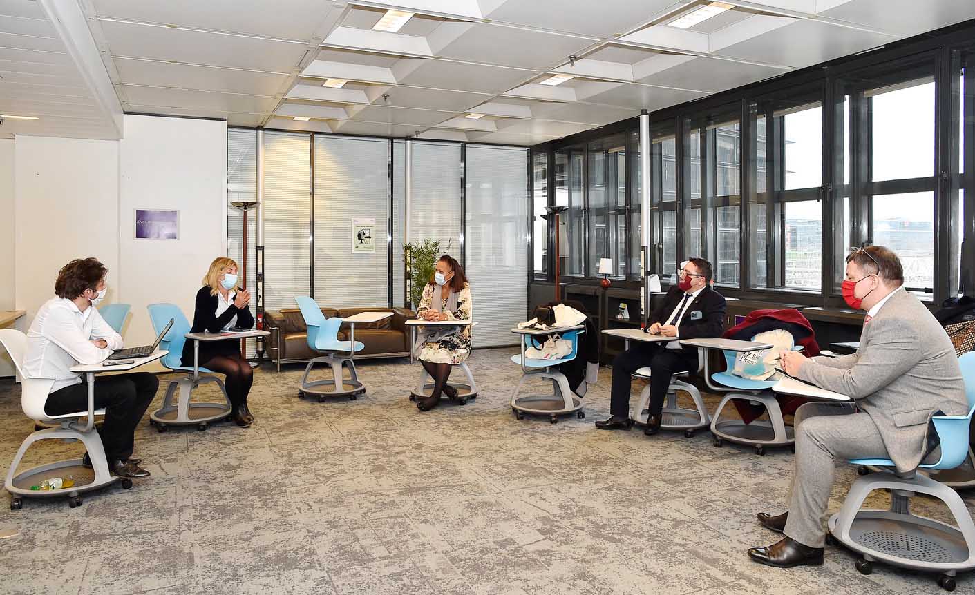 La ministre de l’Education, de la modernisation de l’administration, en charge du numérique, Christelle Lehartel, accompagnée de son directeur de cabinet, Thierry Delmas, et du directeur de la modernisation et de la réforme de l’administration, Eric Déat, a visité différents laboratoires d’innovation : la Fabrique RH basée à la station F, le Lab de Bercy et le Lab Innovation du CNFPT.