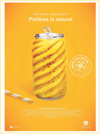 Une série de visuels mettant en valeur les aliments riches en sucre naturel sera affichée sur toute l’île de Tahiti sur les 4 m x 3 m, dans les lieux publics. Les visuels seront visibles dans la presse écrite ainsi que sur les réseaux sociaux et le site internet de la direction de la santé.