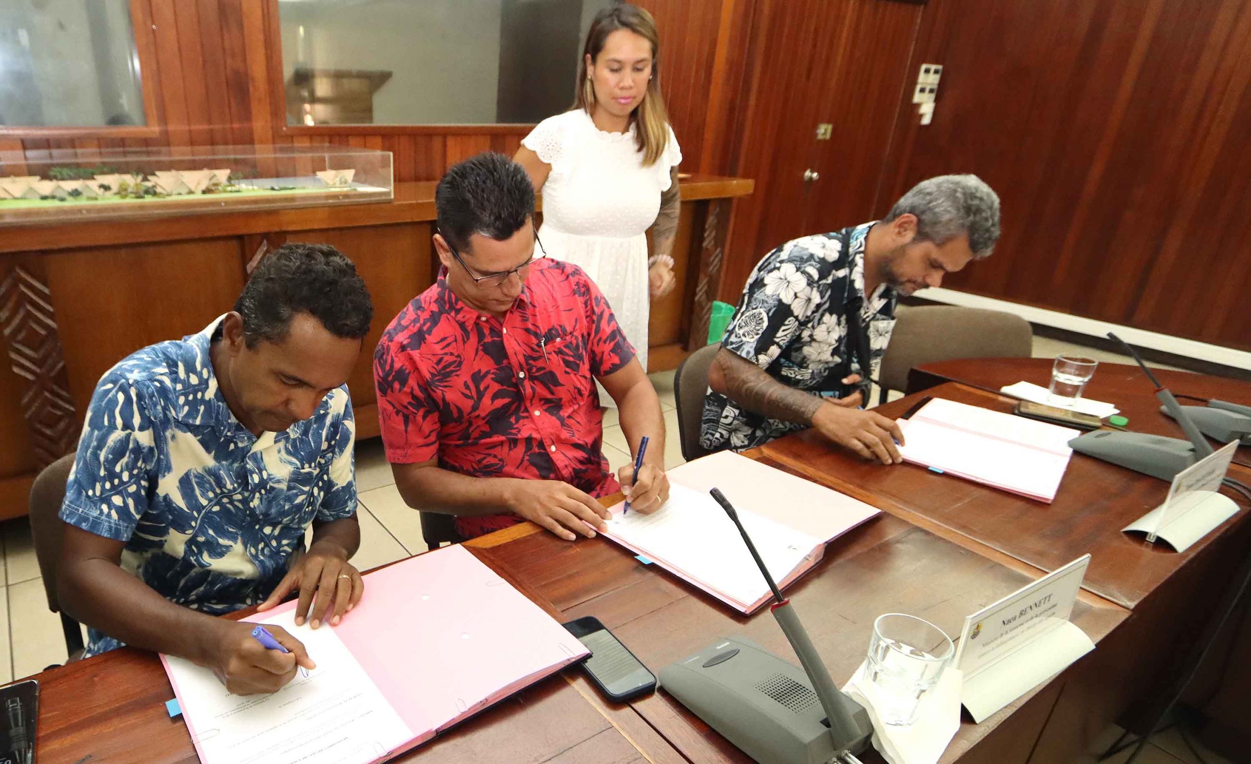 Le ministre de la Jeunesse, et de la Prévention contre la délinquance, en charge des Sports, Naea Bennett, le maire de la commune de Teva I Uta, Tearii Te Moana Alpha, et le délégué pour la prévention de la délinquance de la jeunesse (DPDJ), Teiva Manutahi, ont signé vendredi 29 mai dernier, une convention-cadre de partenariat en vue de valoriser et de promouvoir l’insertion des jeunes dans la commune de Teva I Uta.
