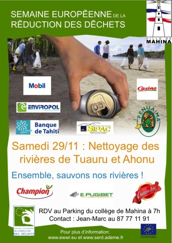 La journée d’action pour la réduction des déchets à Mahina aura lieu ce samedi 29 novembre à partir de 7 heures. Rendez-vous est donné à la population au parking du collège de Mahina.