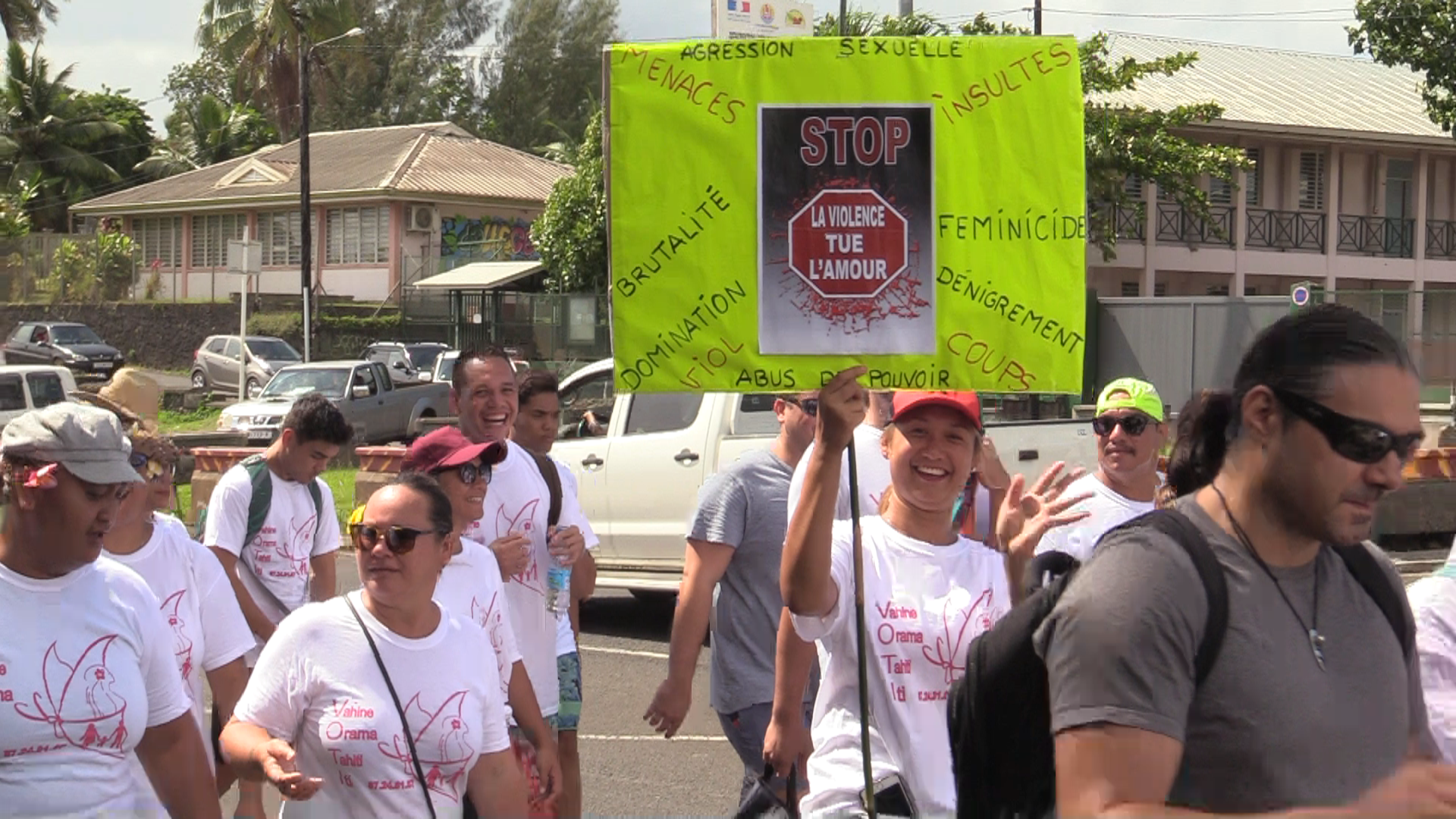 Pour la première fois et en écho à la mobilisation nationale, l’association Vahine Orama Tahiti Iti a marché aujourd’hui en hommage aux femmes, victimes des coups de leur conjoint. L’association a recueilli le témoignage de 197 femmes victimes de violences conjugales depuis début 2019. « À la Presqu’île, la violence existe. Je suis là, je suis sur le terrain, je le vois, et il y a les chiffres qui le montrent » explique Marie-Noëlle Epetahui, présidente de l’association Vahine Orama Tahiti Iti.