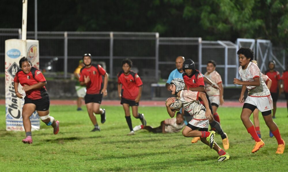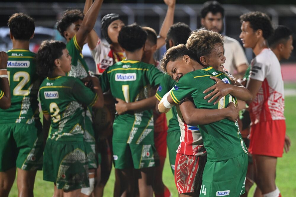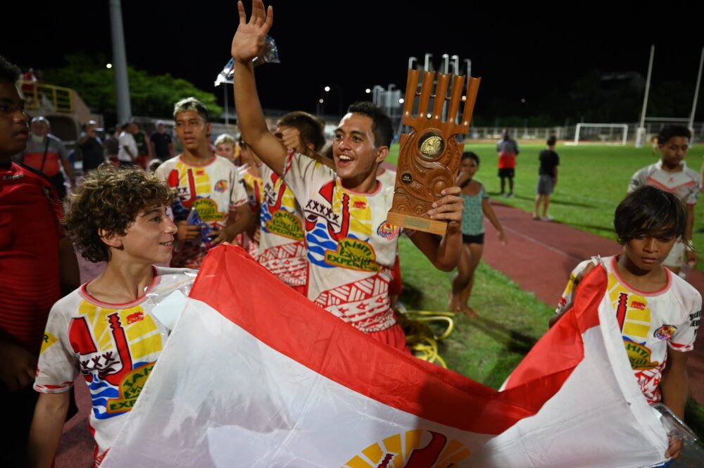 Le trophée se joue donc entre Tahiti et les Îles Cook, quelque peu mises en difficulté par des règles inhabituelles pour ces joueurs. Cette fois encore, les Tahitiens font preuve d’une belle cohésion et d’une maîtrise technique appréciable pour leur âge : très peu de ballons perdus, une pluie d’essais signés par les désormais célèbres jumeaux de Paea Manuarii et Manutea Teinaurii, mais aussi par l’ailier supersonique Elyas Tefaatau ou le valeureux capitaine Matahiarii Aperahama-Taaroa, appuyés par le pied sûr de Jackson Bourne ou d’Ariihee Wong Sung. Mais c’est surtout leur vitesse et leur solidarité qui leur permet de remporter sans trembler cet ultime défi (24-10) et de décrocher un trophée remis par le Ministre des Sports.
