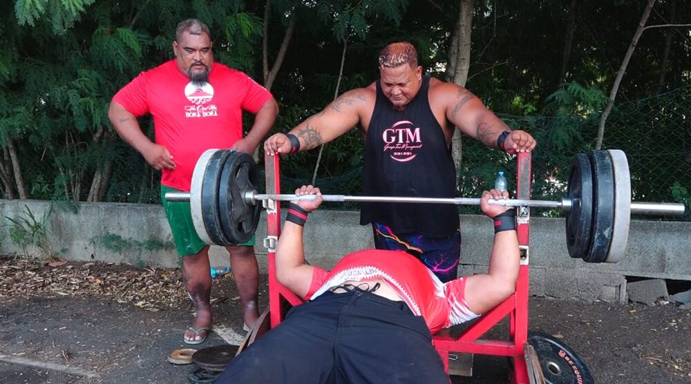 Arrivés le matin sur Tahiti, les deux poids lourds de Bora Bora ont profité de la salle de gym à ciel ouvert de Eriatara Ratia et Tauraatua Teua pour effectuer leurs derniers réglages. Chaque répétition, chaque barre compte : Tario Teraiharoa, triple champion de France dans sa catégorie, vise maintenant un quatrième sacre national. « Quand j’ai regardé les inscriptions, je pense que je suis tout seul en master 1 donc j’essaierai de battre mon record, 237.5 établi il y a 2 ans. »