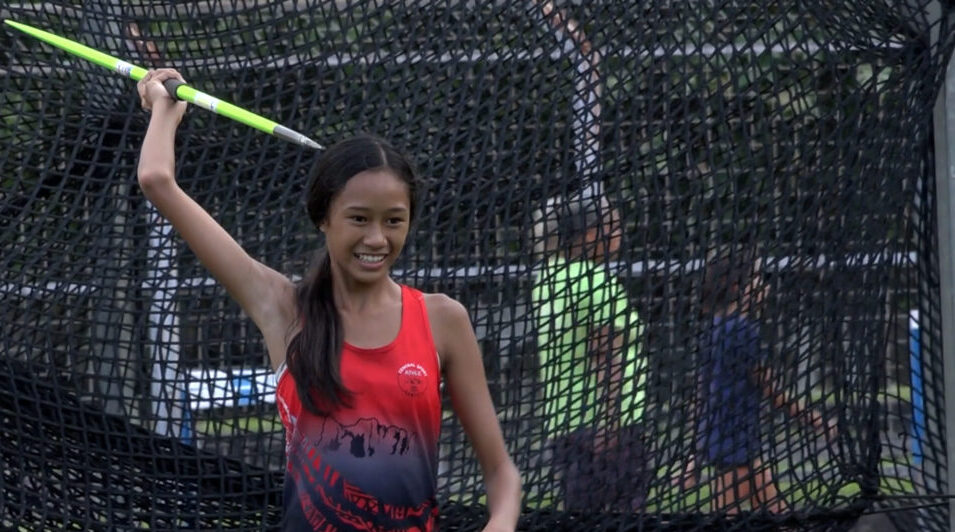 À l’échauffement, Rarahu Champs répète ses mouvements avec application. Depuis le week-end du 21-22 avril, l’adolescente est détentrice du record de Polynésie de triathlon U14 – sprint, saut et lancer. Résultat : une performance complète de 120 points.