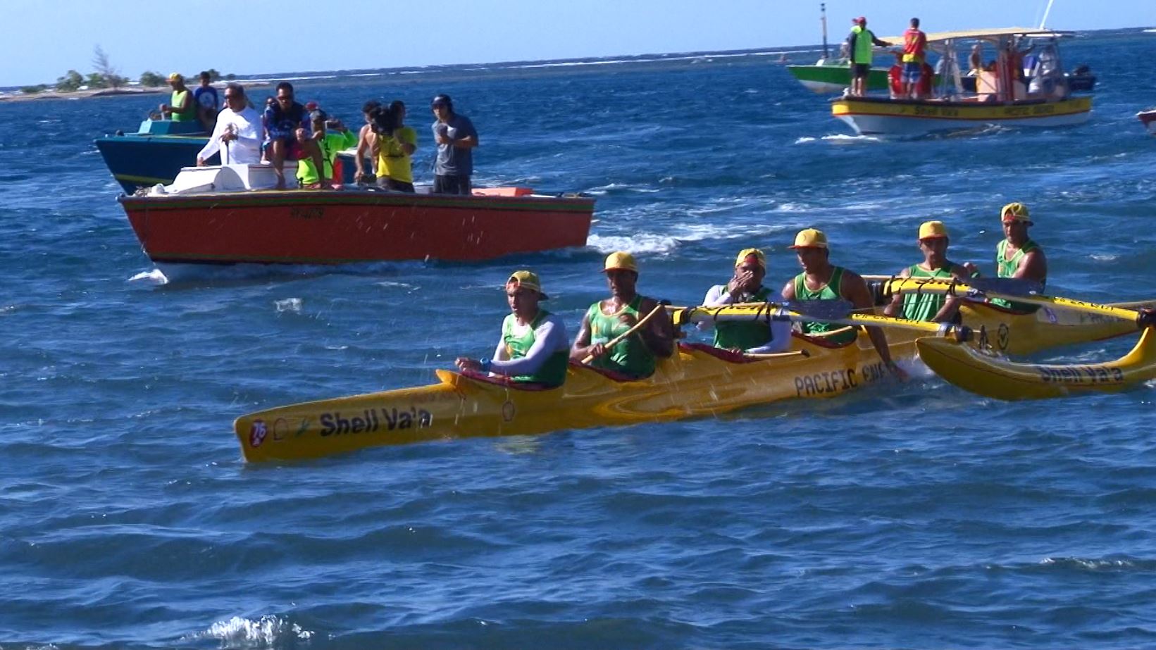 Les changements sont autorisés après 45 minutes de course. Chaque équipage a sa stratégie. À la pointe Aroa à Moorea, Shell Va’a est toujours en tête, Air Tahiti est monté à la 2e place. OPT est 3e. Hinaraurea rétrograde à la 4e place.