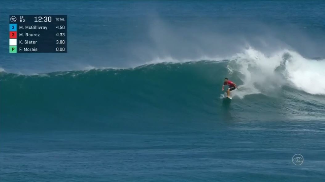 Après avoir remporté les quarts de finale contre les Brésiliens Luel Felipe et Alejo Muniz, et le Sud-Africain Matthew McGillivray, Michel Bourez s’est incliné aujourd’hui lors des demi-finales.
