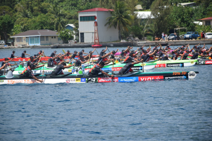10h05: Ca y est, c’est parti pour les vétérans. Ils sont seize équipages en lice. hier, Fare Ara de Huahine l’avait emporté largement avec 8 minutes d’avance sur le deuxième.
