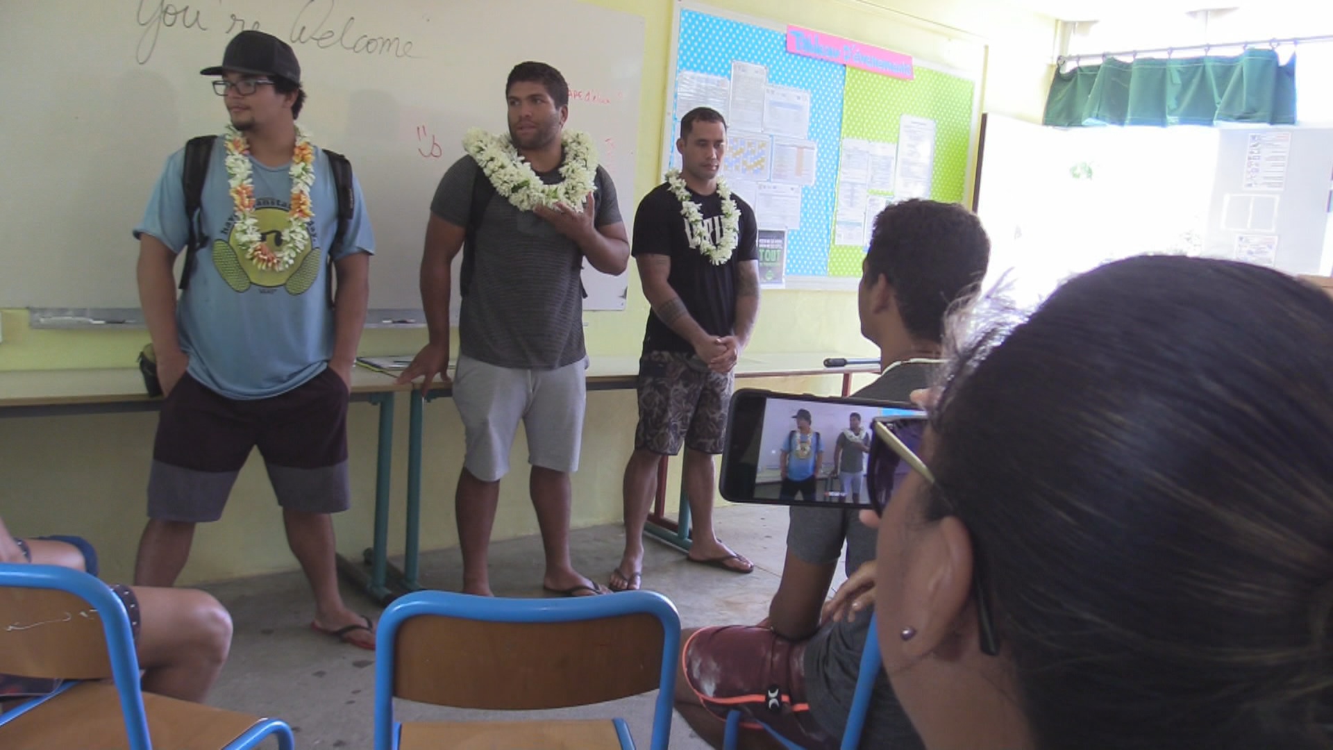 Les yeux rivés sur la star du jour, ces élèves de la classe Mission de lutte contre le décrochage scolaire du lycée d’Uturoa, ne perdent pas une miette de l’histoire de Henri Burns. L’athlète partage volontiers les expériences marquantes de sa vie. Enfant placé en famille d’accueil, il raconte comment le sport a changé sa vie.