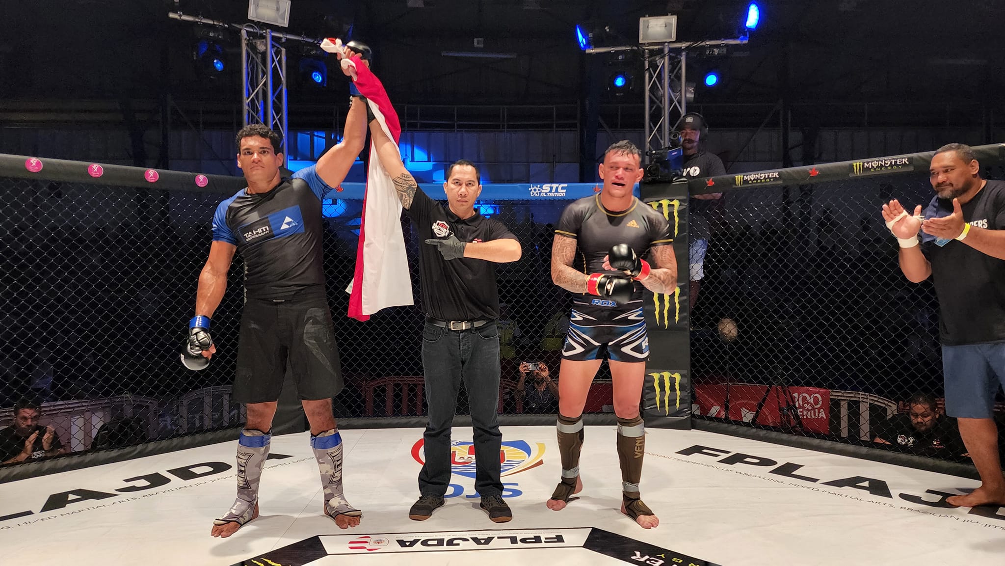 Le champion de Tae Kwon Do Ariimana Lehartel, fort de son allonge mais aussi de sa palette technique au sol, remporte le titre face au « Kid » Dushan Tamuera, après avoir géré son combat sans précipitation, dans une belle sérénité. Ariimana en profite pour s’adresser directement à son frère Ariihei, qui dispute en ce moment les championnats du monde de Tae Kwon Do à Sofia, en Bulgarie : « Ramène-nous l’or » lui dit-il face à la caméra de TNTV. Deux titres en quelques jours pour la fratrie, ce serait un nouvel exploit.