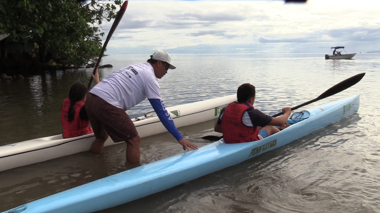 Du côtés du va’a, les enfants assimilent plus rapidement. La synchronisation et l’esprit d’équipe sont mis à l’épreuve.