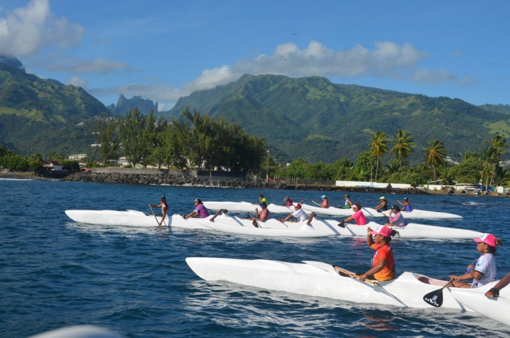 C’est aux environs de 8H que le premier tour d’entraînement a commencé dans la baie de Taaone. Les équipes : Heiva hoe (Juniors), Teva va’a (Open) et Ruahatu (Master) se sont entraînées ensemble sous la supervision de Philipe Bernardino, le coach de la délégation tahitienne nommé par la FTV (Fédération Tahitienne de Va’a).