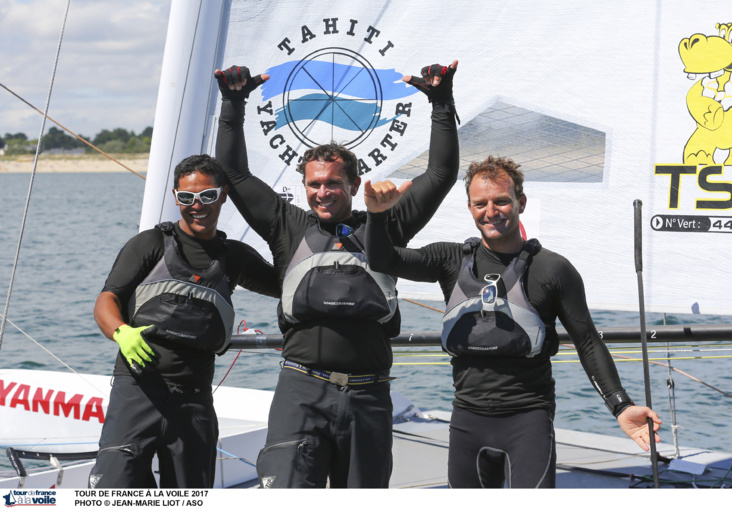 Et à Nice, dernier acte, on fait 2e et 3e, c’est vraiment superbe. Objectif accompli. On pensait faire 3e et on monte sur la 2marche du podium. C’’est super ! Je suis très content parce que c’était très difficile. On a failli ne pas venir sur ce Tour et on finit 2e… Je suis très content pour la Polynésie française et la voile polynésienne. Il nous reste jusqu’au 31 août pour lever des fonds. Après ça, on sera obligé de vendre notre bateau et mettre fin à nos projets de développement de la voile et de formation pour les jeunes. On espère que le public sera au rendez-vous pour nous soutenir. «
